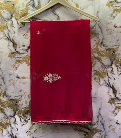 3 Piece - Pure Embroidered Bamber Chiffon CHERRY - Pink Suit AN-0020