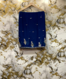 3 Piece - Pure Embroidered Bamber Chiffon DEEP - Blue Suit AN-0035