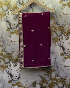 3 Piece - Pure Embroidered Bamber Chiffon DEEP - Purple (PLUM) Suit AN-0006