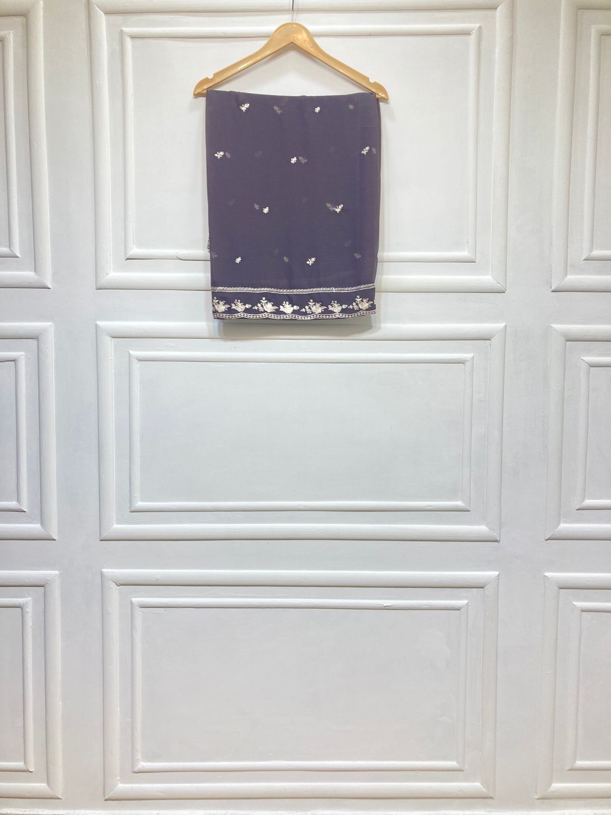 3 Piece - Pure Embroidered Bamber Chiffon Galaxy - GRAY Suit AN-0053