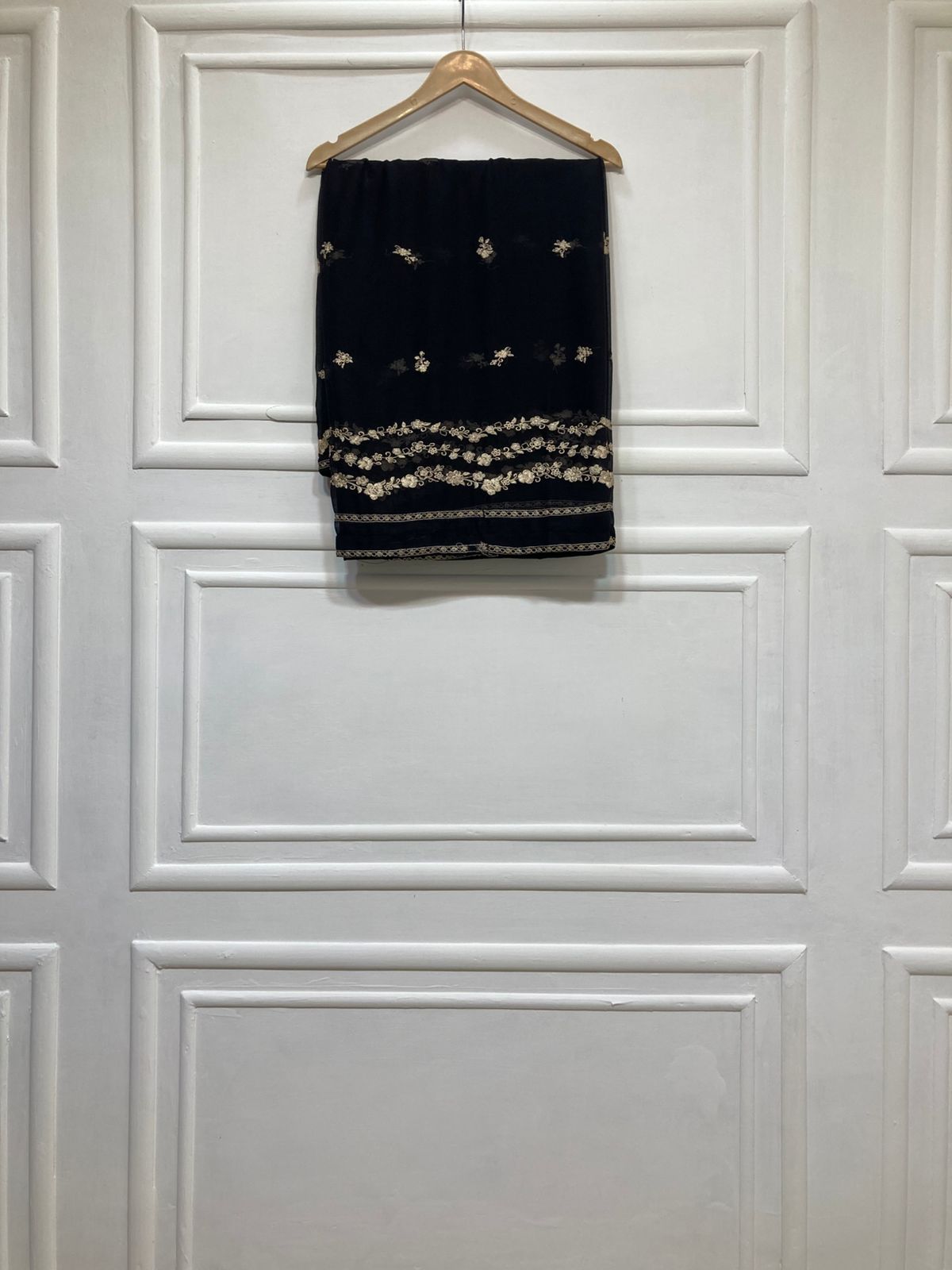 Shirt: Bamber Pure Chiffon with exquisite embroidery and heavy handwork, giving it a regal and timeless appeal.