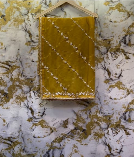3 Piece - Pure Embroidered Bamber Chiffon MUSTARD - Yellow Suit AN-0024