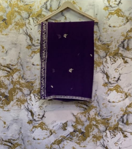 3 Piece - Pure Embroidered Bamber Chiffon PLUM - Purple Suit AN-0026