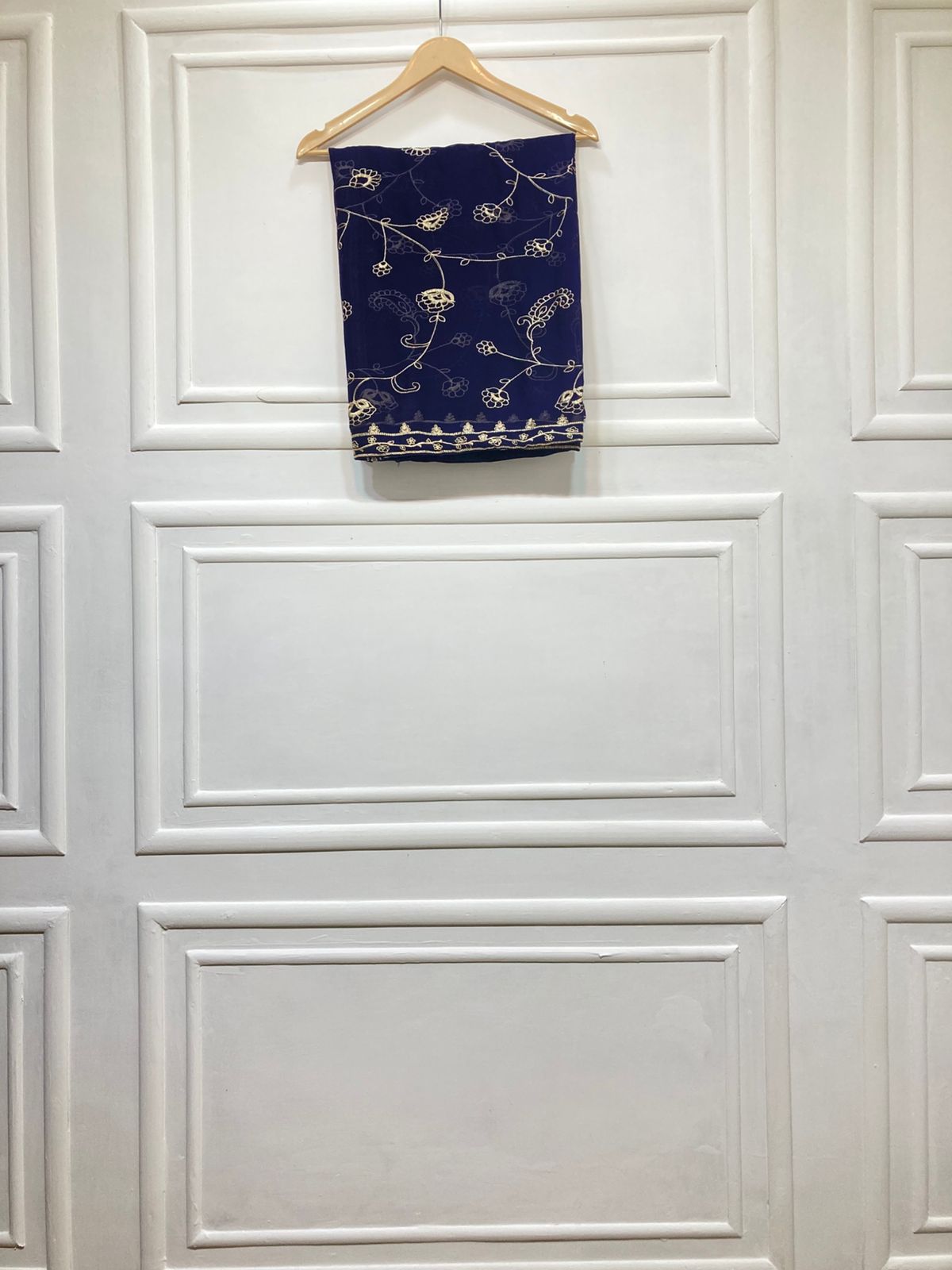 3 Piece - Pure Embroidered Bamber Chiffon ROYAL - BLUE Suit AN-0050