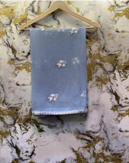 3 Piece - Pure Embroidered Bamber Chiffon SKY - Blue Suit AN-0029