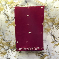 3 Piece - Pure Embroidered Bamber Chiffon WINE - Red Suit AN-0017