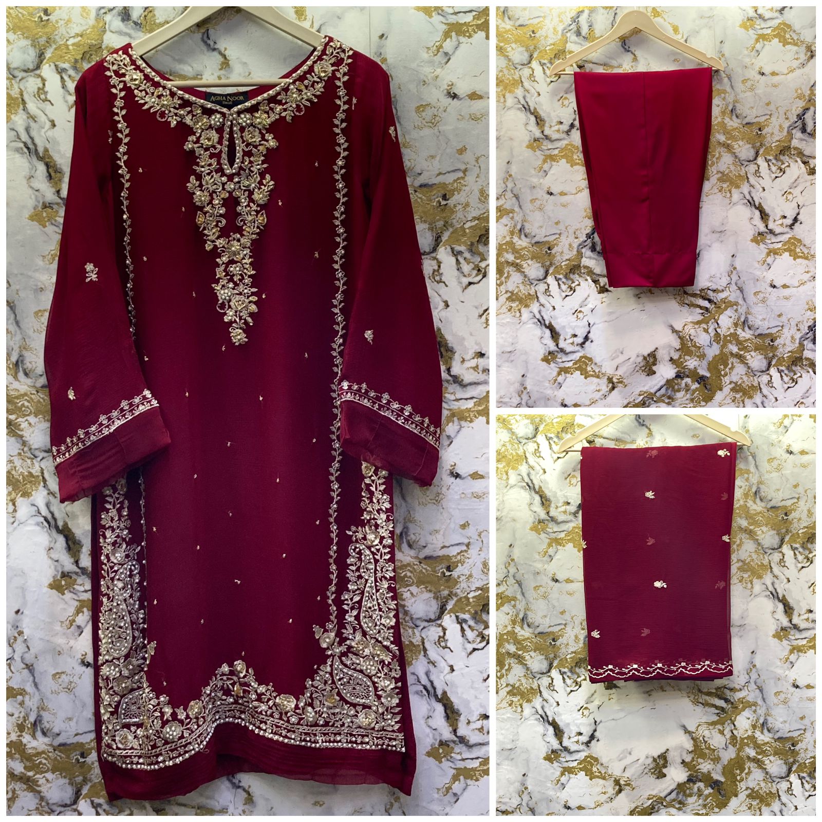 Dupatta: Chiffon embroidered dupatta, adding elegance and grace to the overall look.