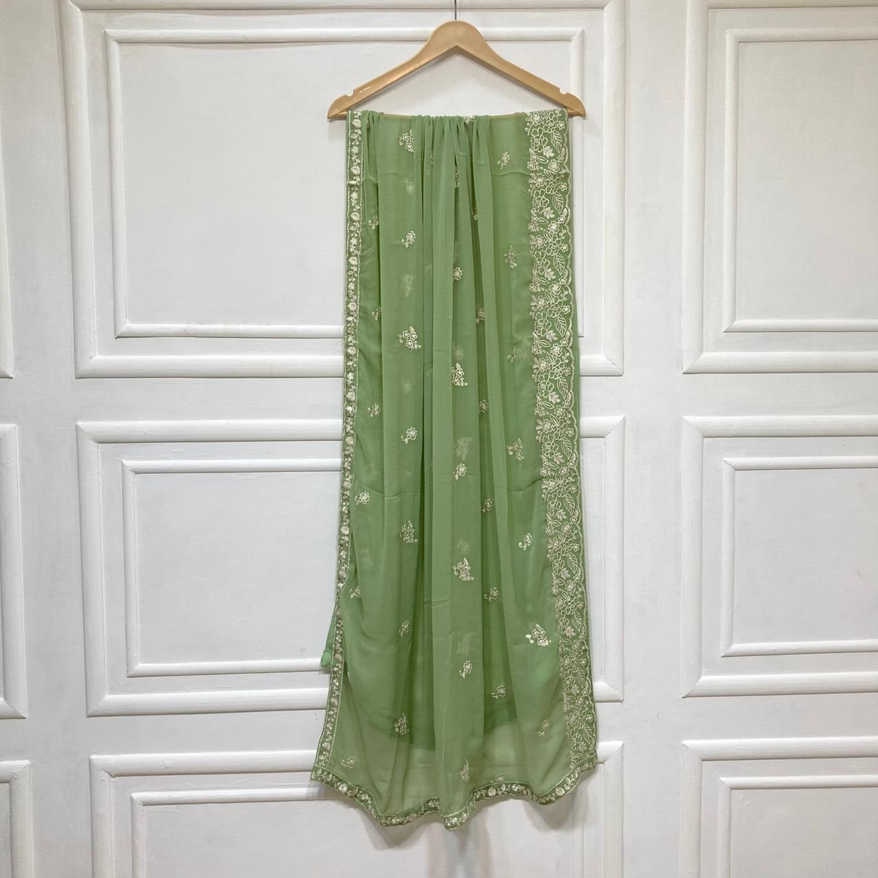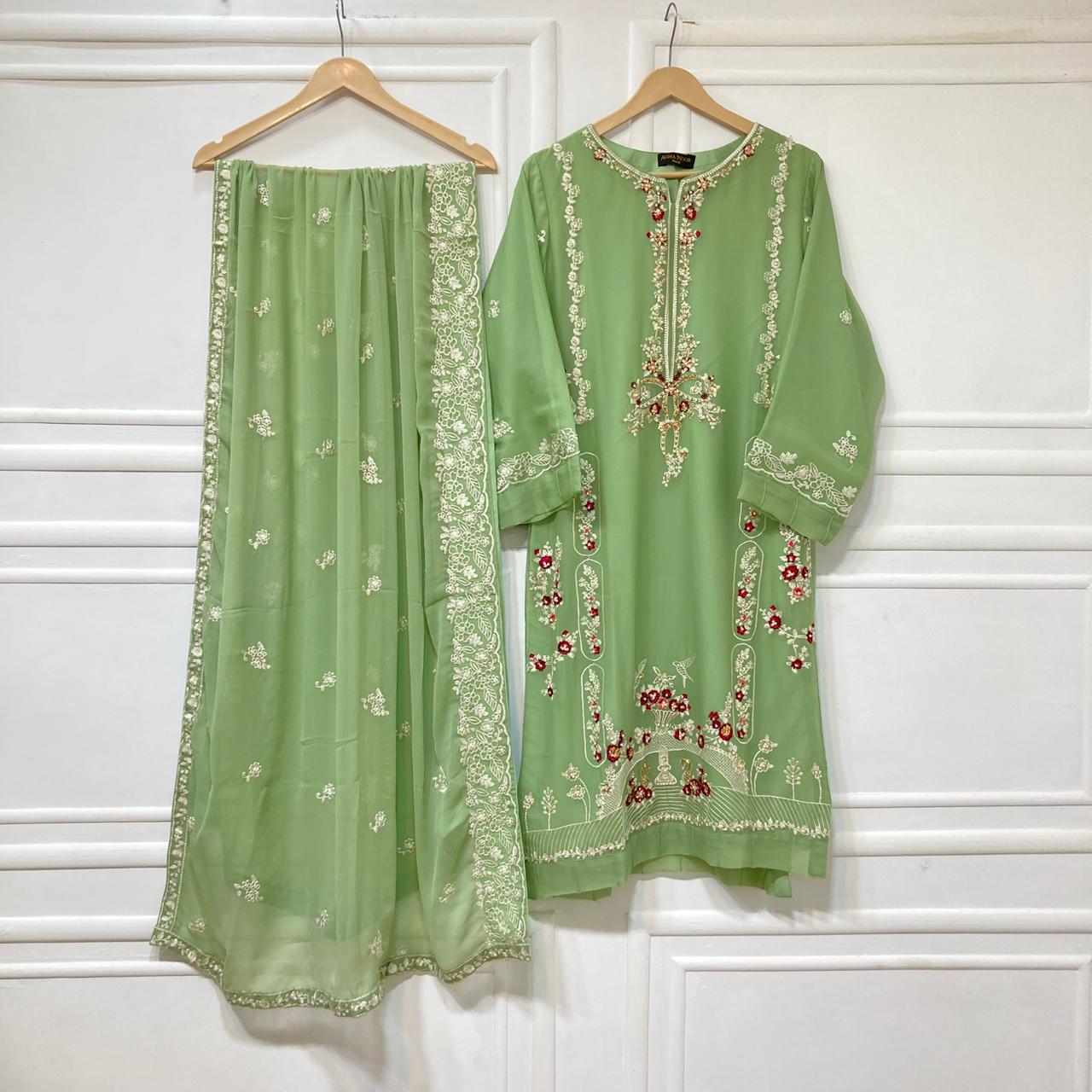 * Dupatta: Chiffon embroidered dupatta, adding elegance and grace to the overall look.