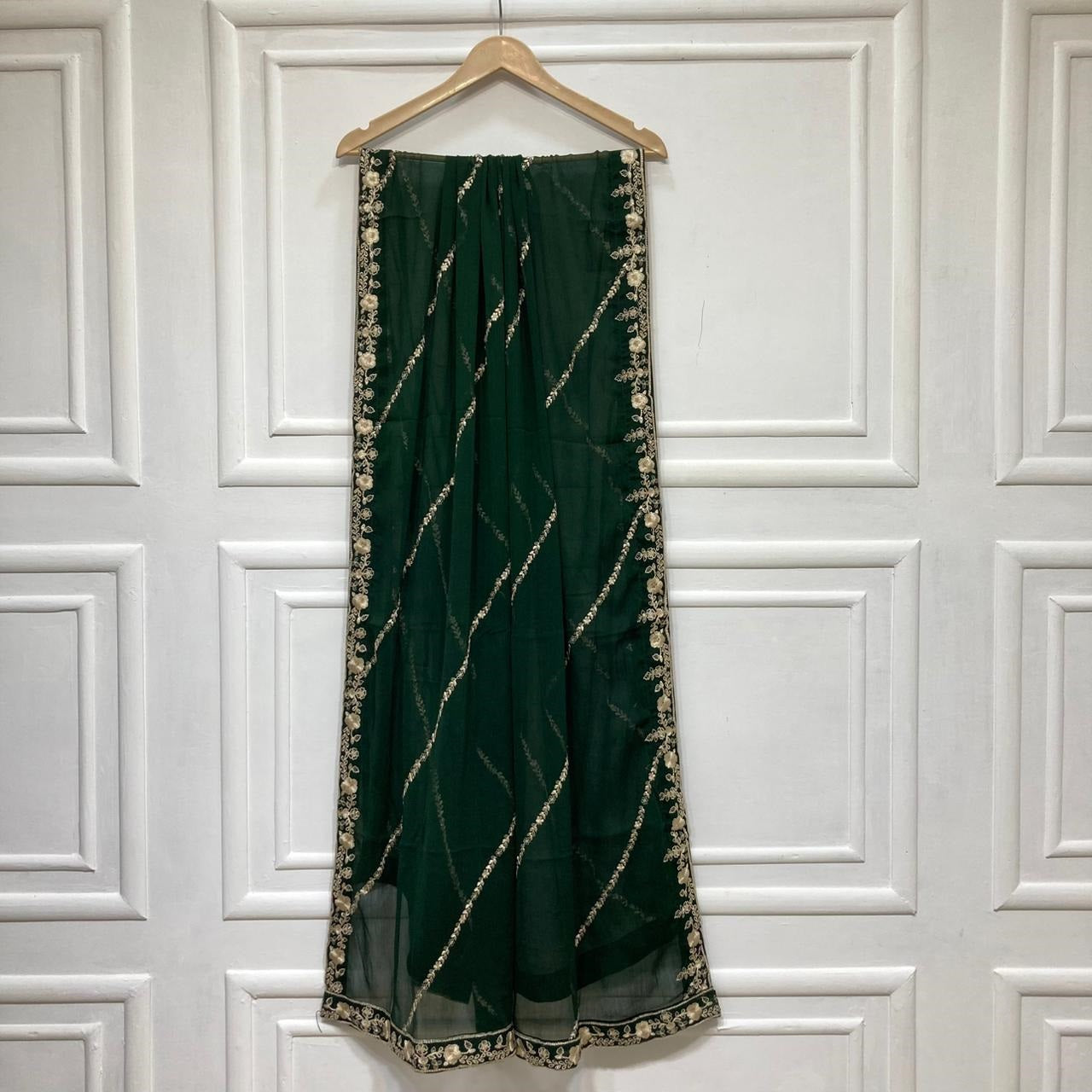 * Dupatta: Chiffon embroidered dupatta, adding elegance and grace to the overall look.