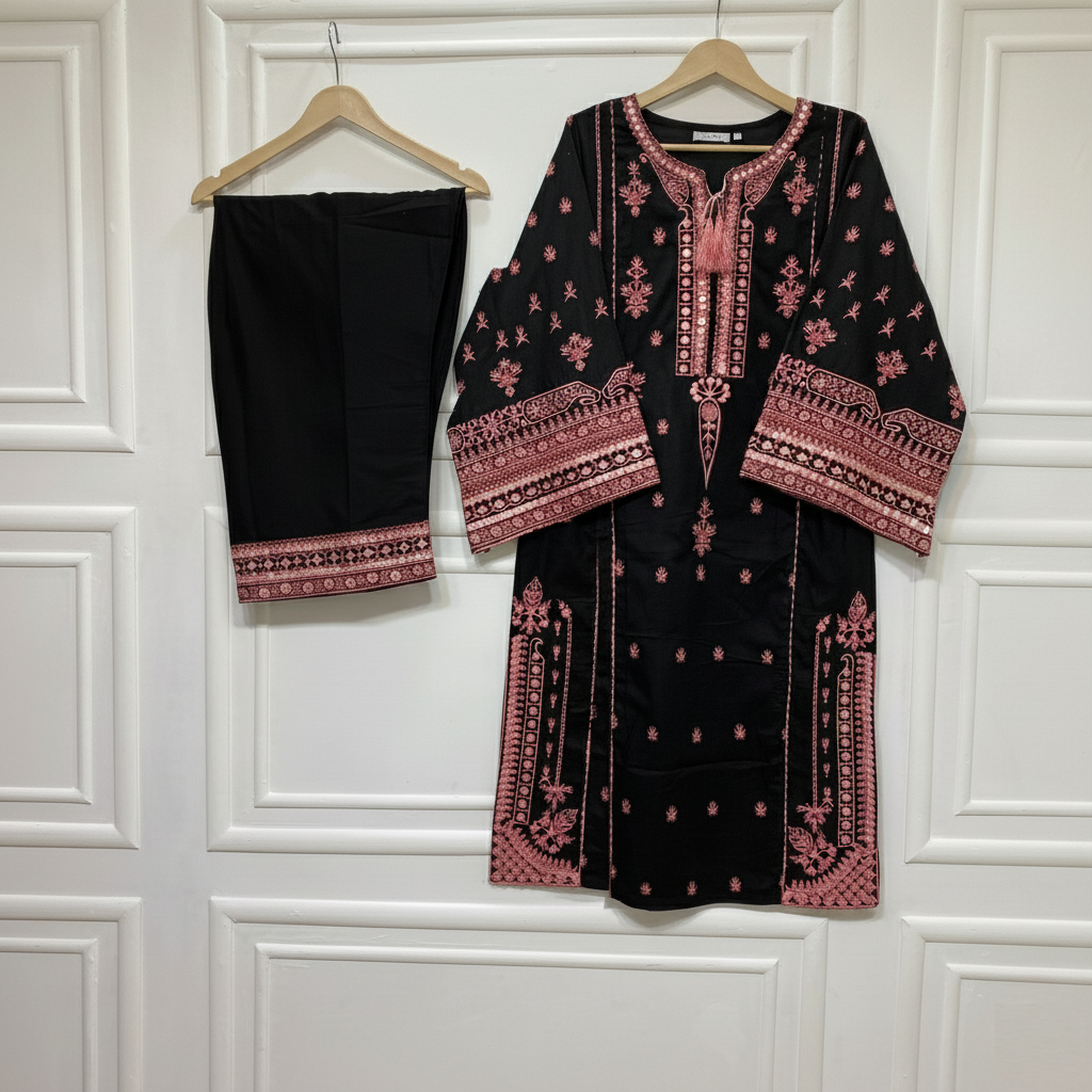•Embroidery: Fully embroidered (overall shirt, sleeves, and trouser)